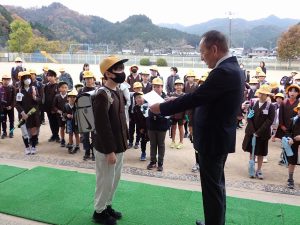 11月27日(木)の全校終会で、社会福祉法人兵庫県共同募金会から「赤い羽根共同募金運動」の感謝状をいただきました。この感謝状は、長年にわたり継続して募金活動を行っている団体に贈っているということです。児童会長が受け取りました。保護者の方のご協力もありがとうございました。共同募金は、「地域において、あらゆる住民が役割を持ち、支え合いながら生活していくことのできる地域コミュニティづくり」をめざして実施されているとのことです。