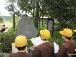 まずは、自分たちが住んでいる地区について、実際に校区を歩いて特徴を見つけています。
