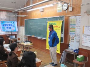 2月16日(月)に丹南ライオンズクラブの方を講師にお招きし、薬物乱用防止教室を実施しました。薬物は「違法な物」「合法な物」「規定で定められていない物」の3つに分けられるということをはじめに教わりました。また、薬物とは体に何らかの変化をもたらすもので、お酒(アルコール)やコーヒー(カフェイン)も薬物に含まれると知り、驚いているのが印象的でした。薬物はちょっとしたきっかけが乱用につながります。薬物乱用は「ダメ、ゼッタイ」の合言葉を忘れず、これから生活をしましょう。