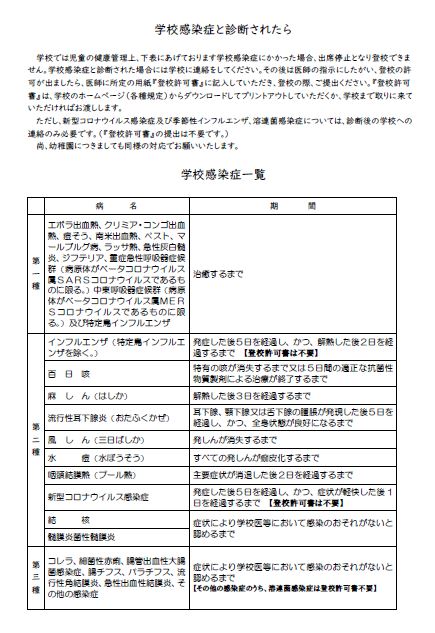 ①感染症と診断された場合以下をご覧のうえ、対応をお願いします。